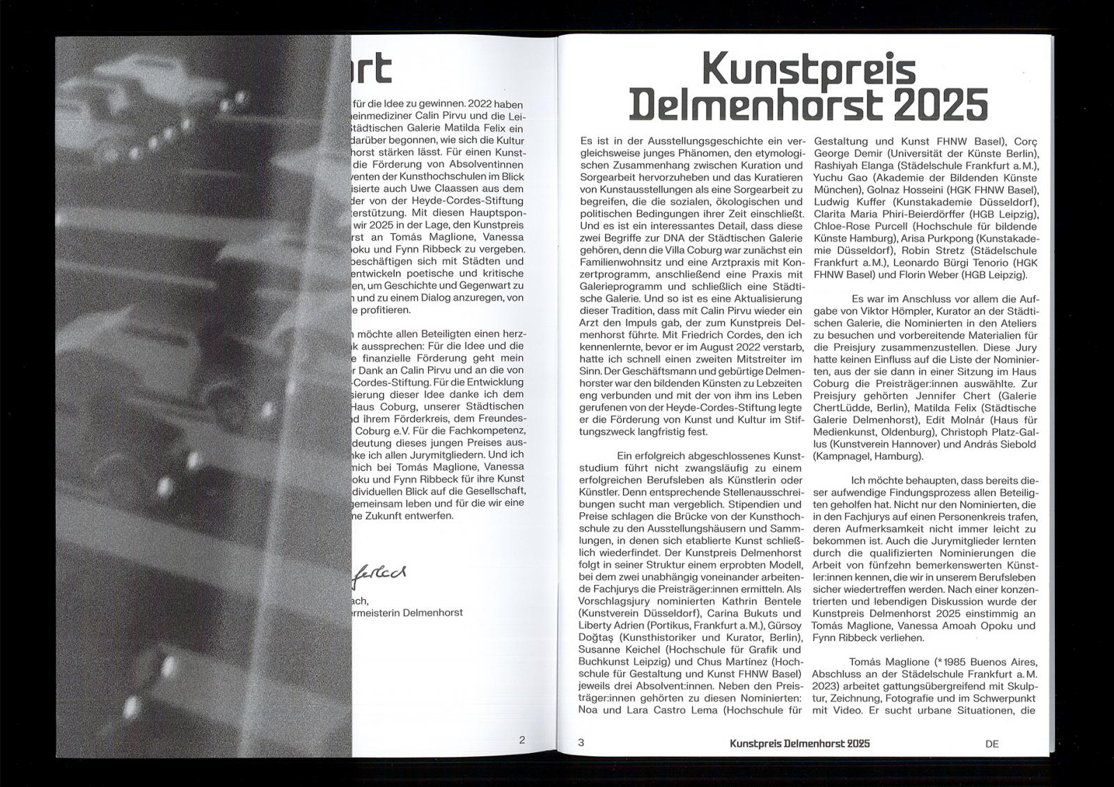 Die Publikation erschien im Jahr 2025 im Rahmen der Ausstellung Kunstpreis Delmenhorst 2025. Tomás Maglione, Vanessa Amoah Opoku, Fynn Ribbeck.