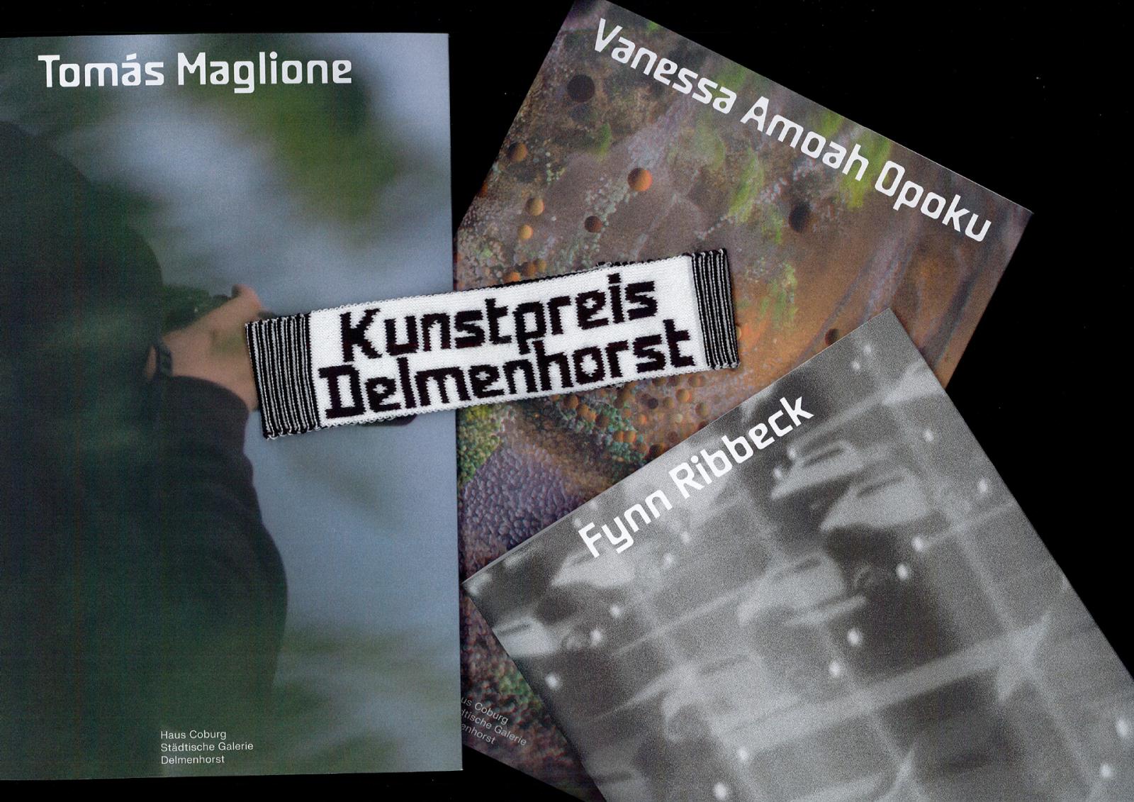 Für einen Gesamtpreis von 37 Euro können die drei Publikationen zum Kunstpreis Delmenhorst 2025 im Verbund erworben werden (Textilbanderole: zusätzlich 2 Euro).